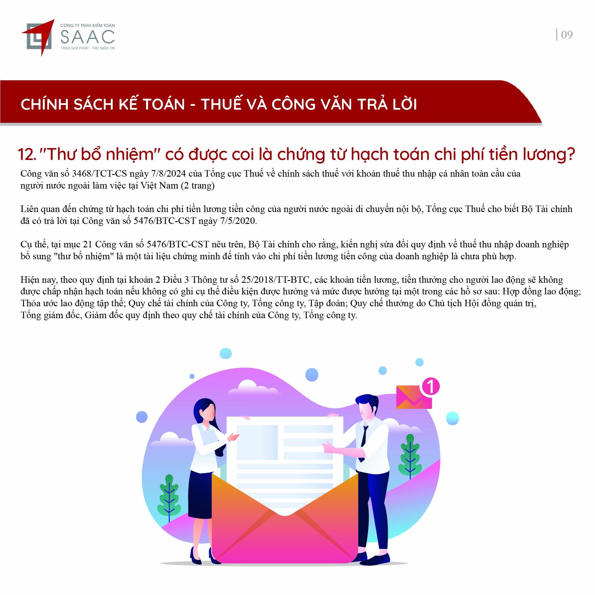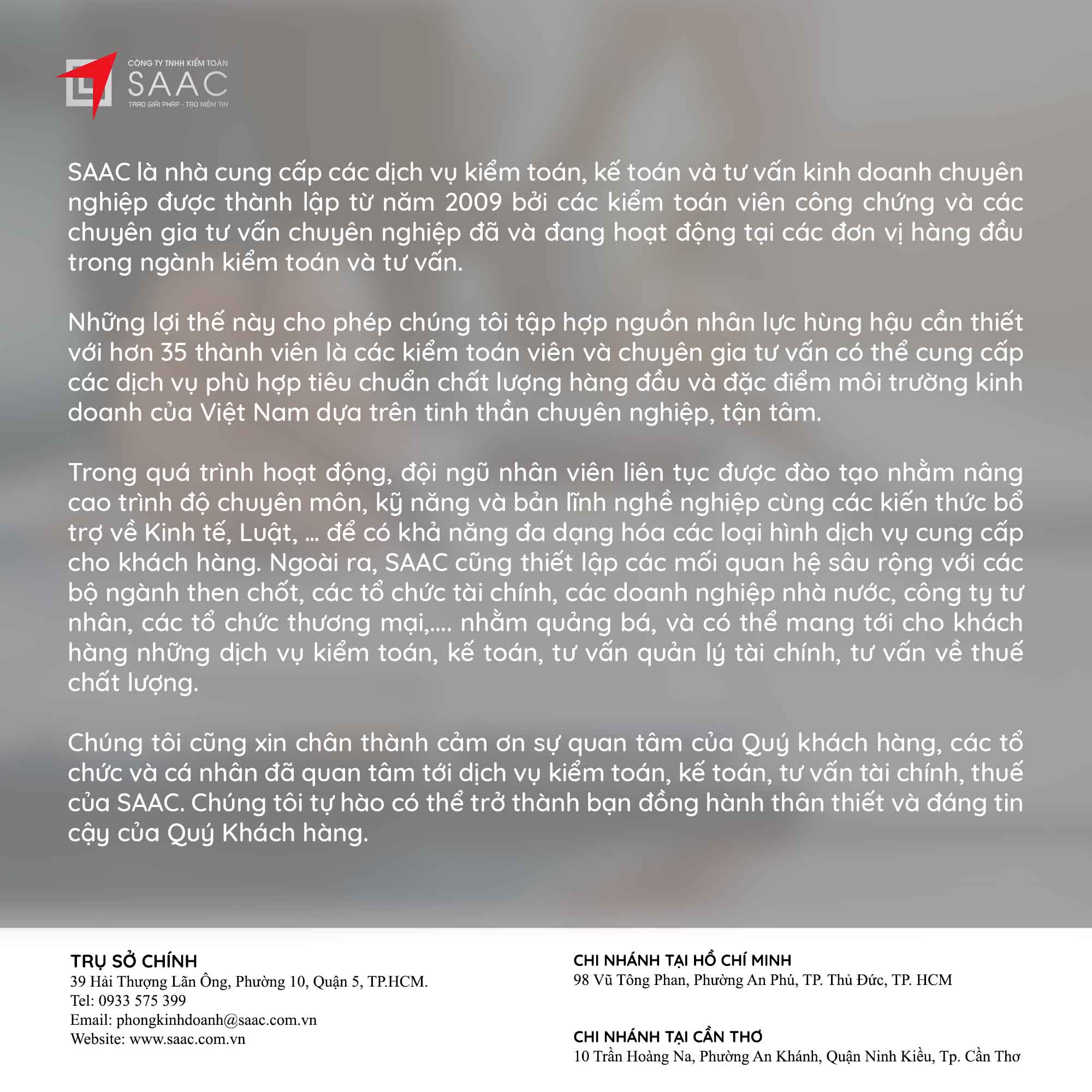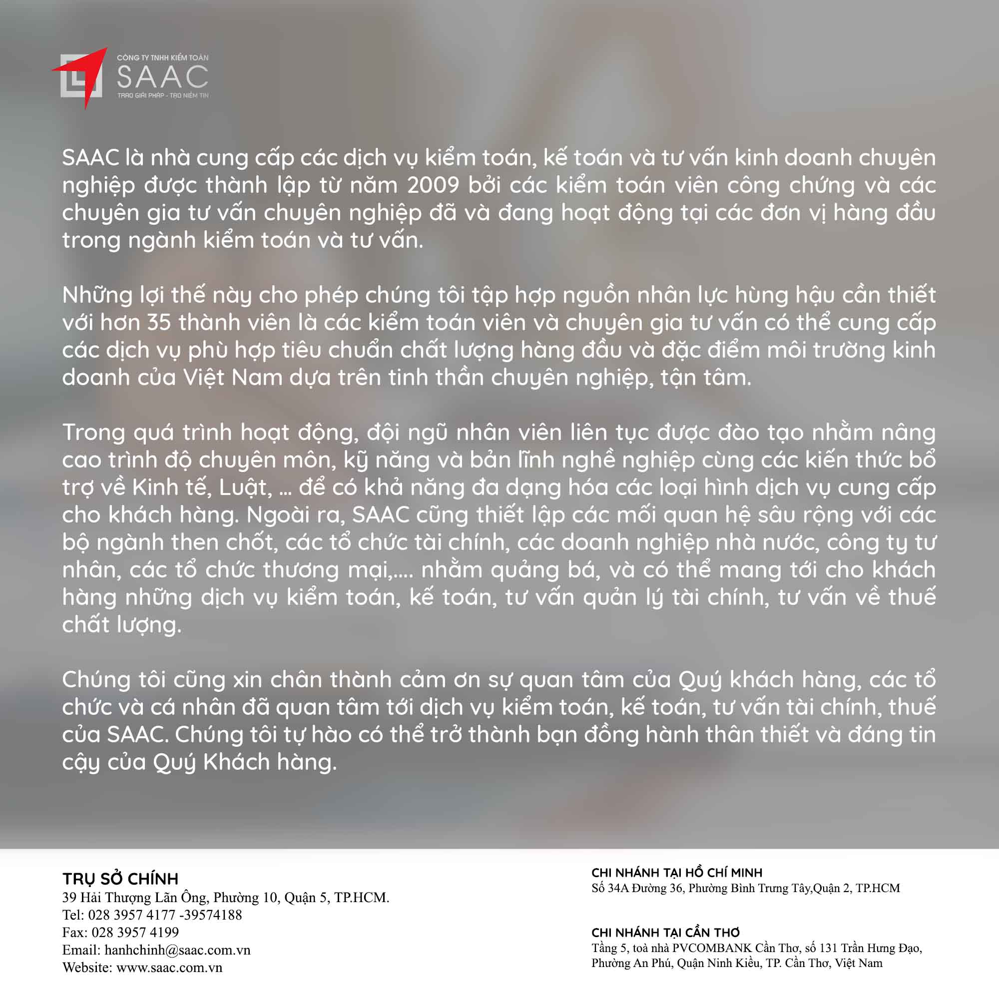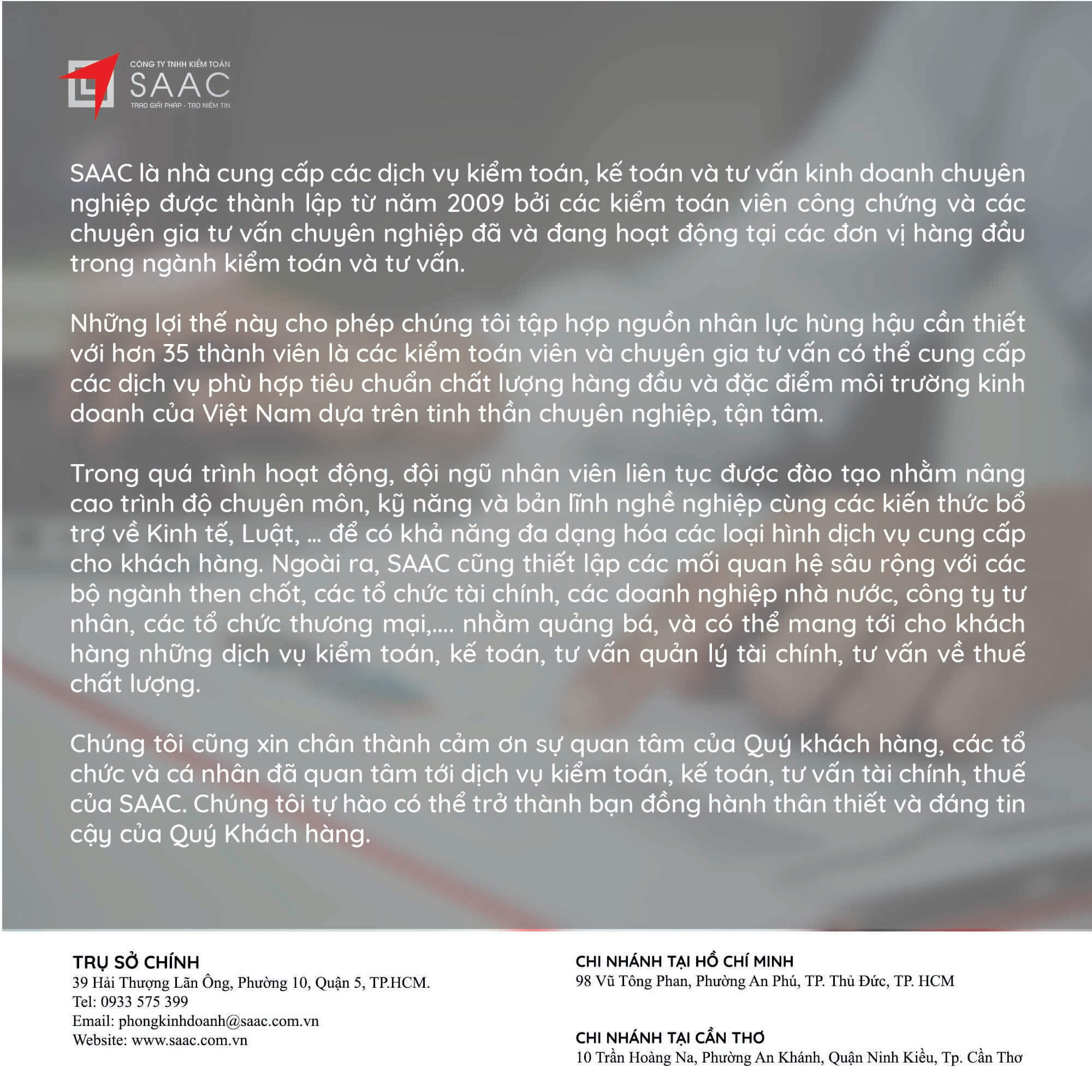Bản tin SAAC tháng này cập nhật các chính sách về việc Đóng cửa chi nhánh, số thuế đầu vào được chuyển cho công ty mẹ khấu trừ tiếp, Cách xác định thời gian khấu hao cho tài sản mới và cũ theo TT45/2013/TT-BTC, Quy định cần biết khi trích trước chi phí quản lý căn hộ,…