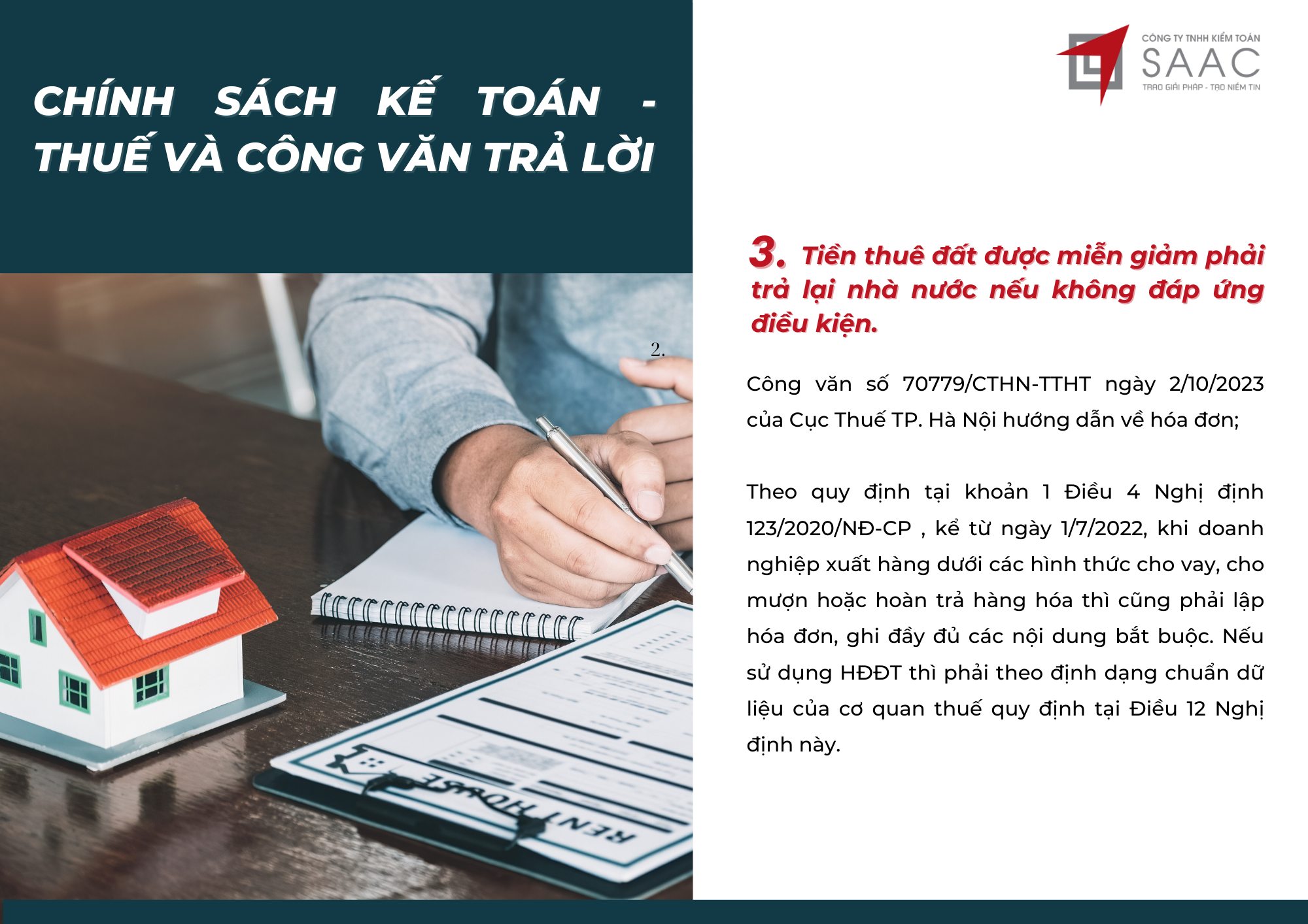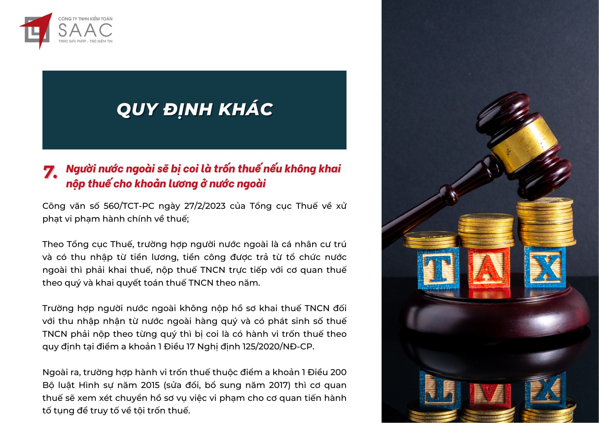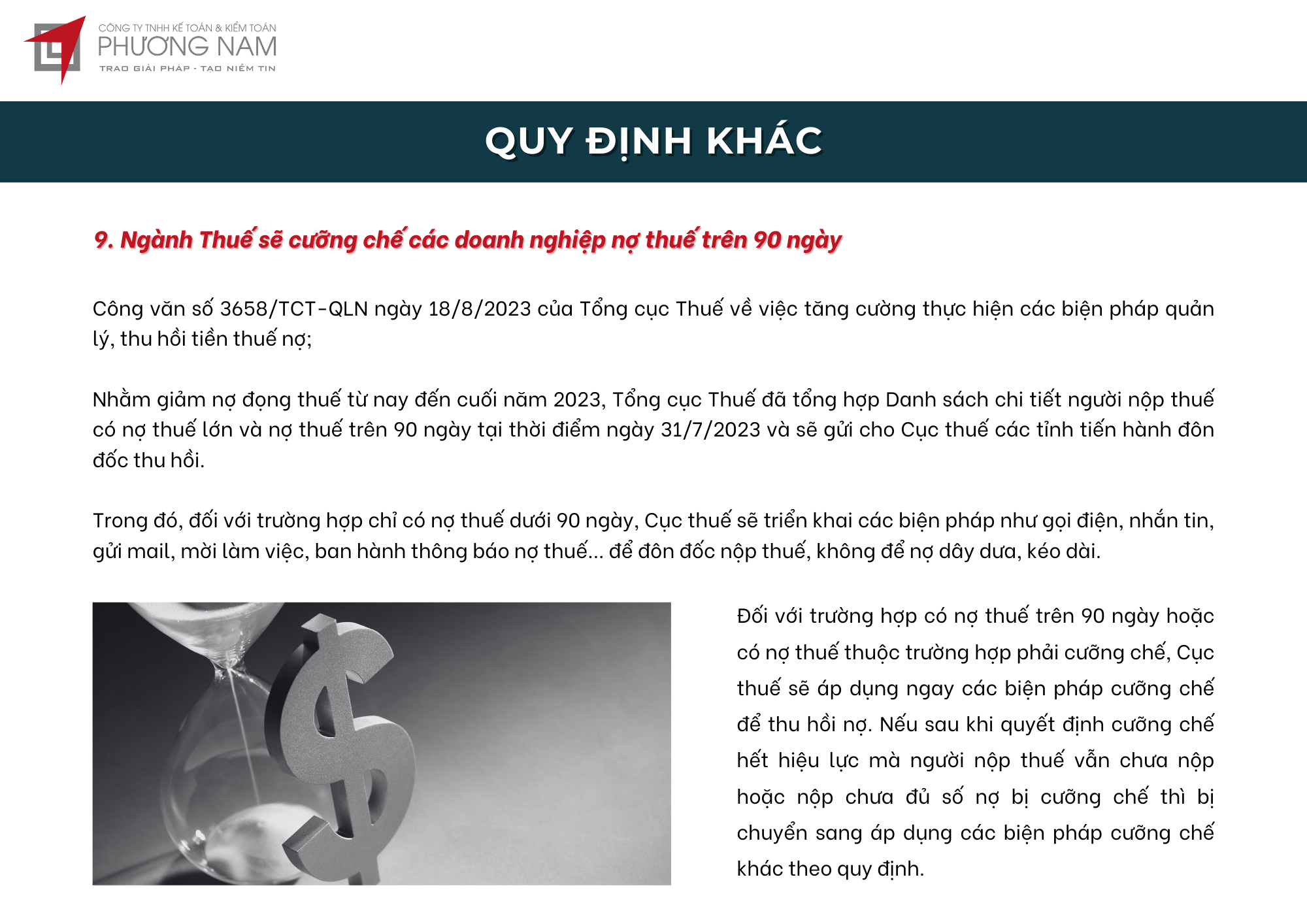 Bản tin SAAC tháng này cập nhật các lưu ý về ngành Thuế sẽ mạnh tay cưỡng chế nợ thuế đối với doanh nghiệp bỏ trốn và buôn bán hóa đơn, Miễn tiền thuê đất thời gian xây dựng cơ bản tối đa không quá 3 năm, Các điểm lưu ý khi quyết toán thuế năm 2023,…