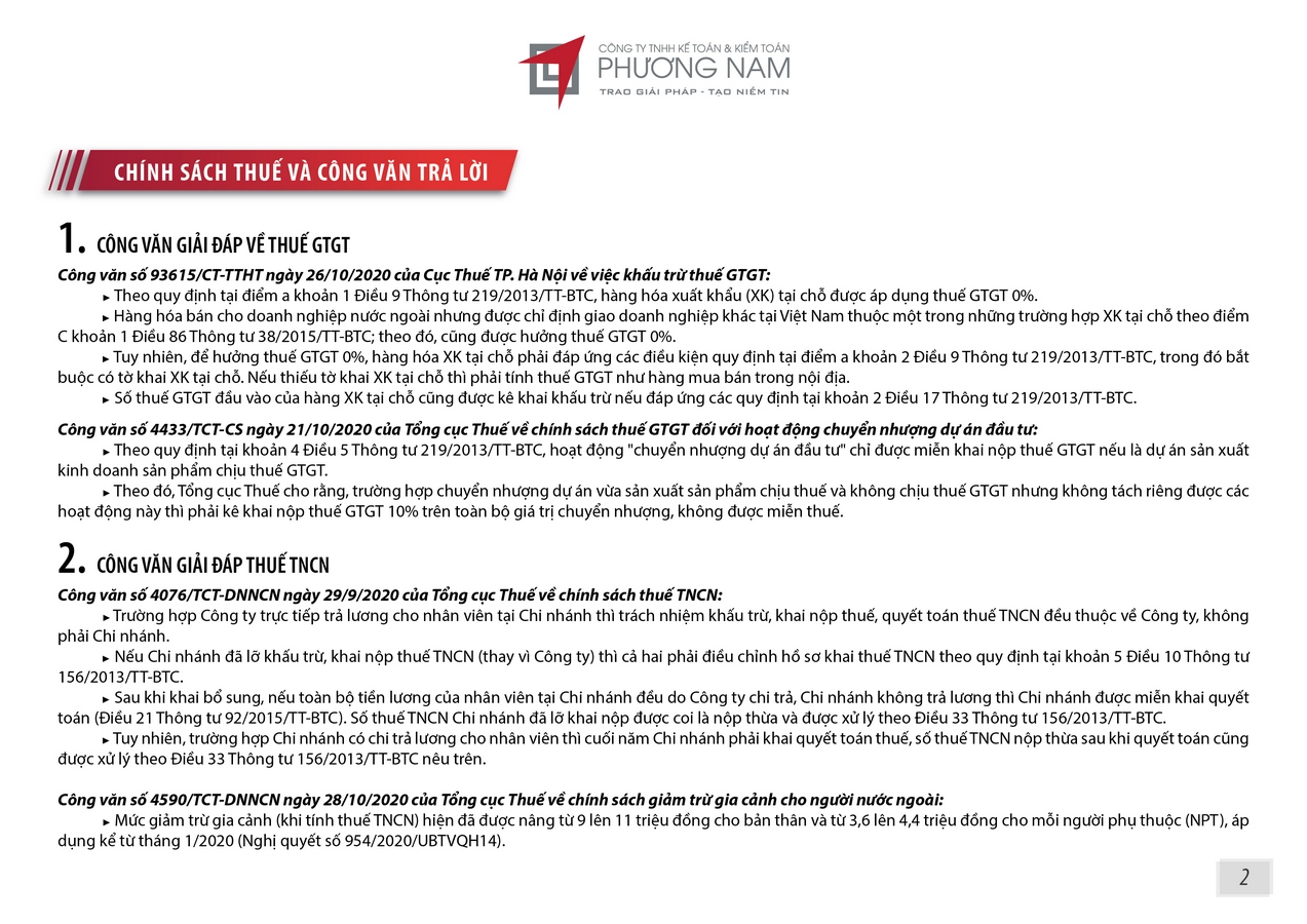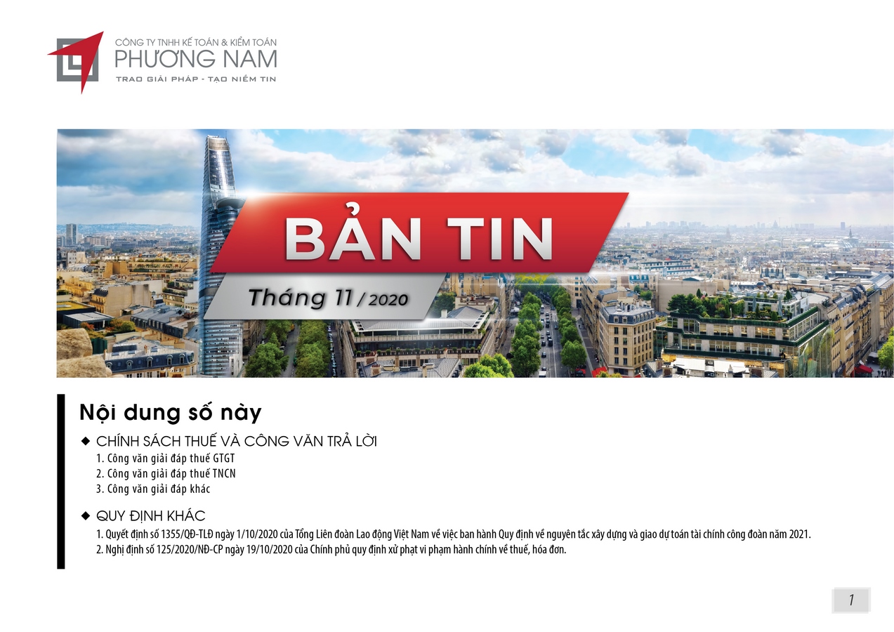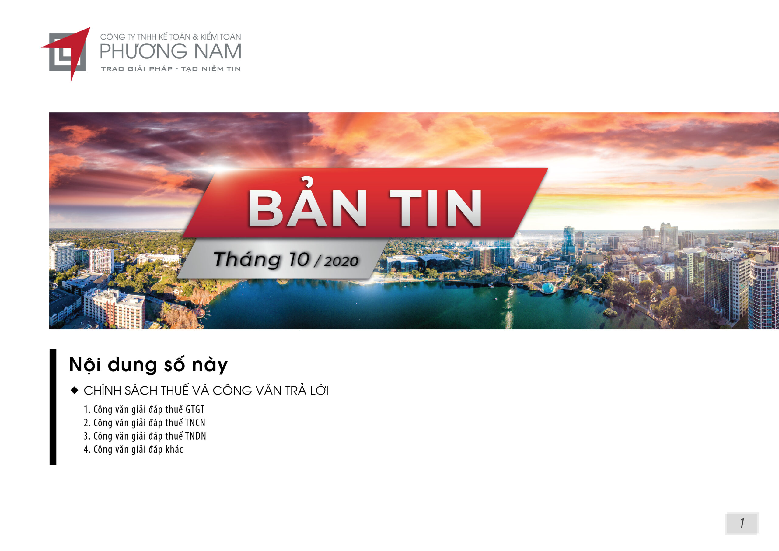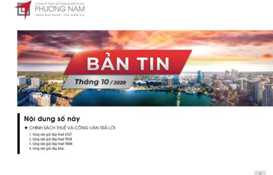 Bản tin Phương Nam tháng 10 giải đáp các vấn đề thuế GTGT, thuế TNDN, thuế TNCN và hướng dẫn về giải quyết hồ sơ chuyển nhượng tài sản gắn liền với đất thuế