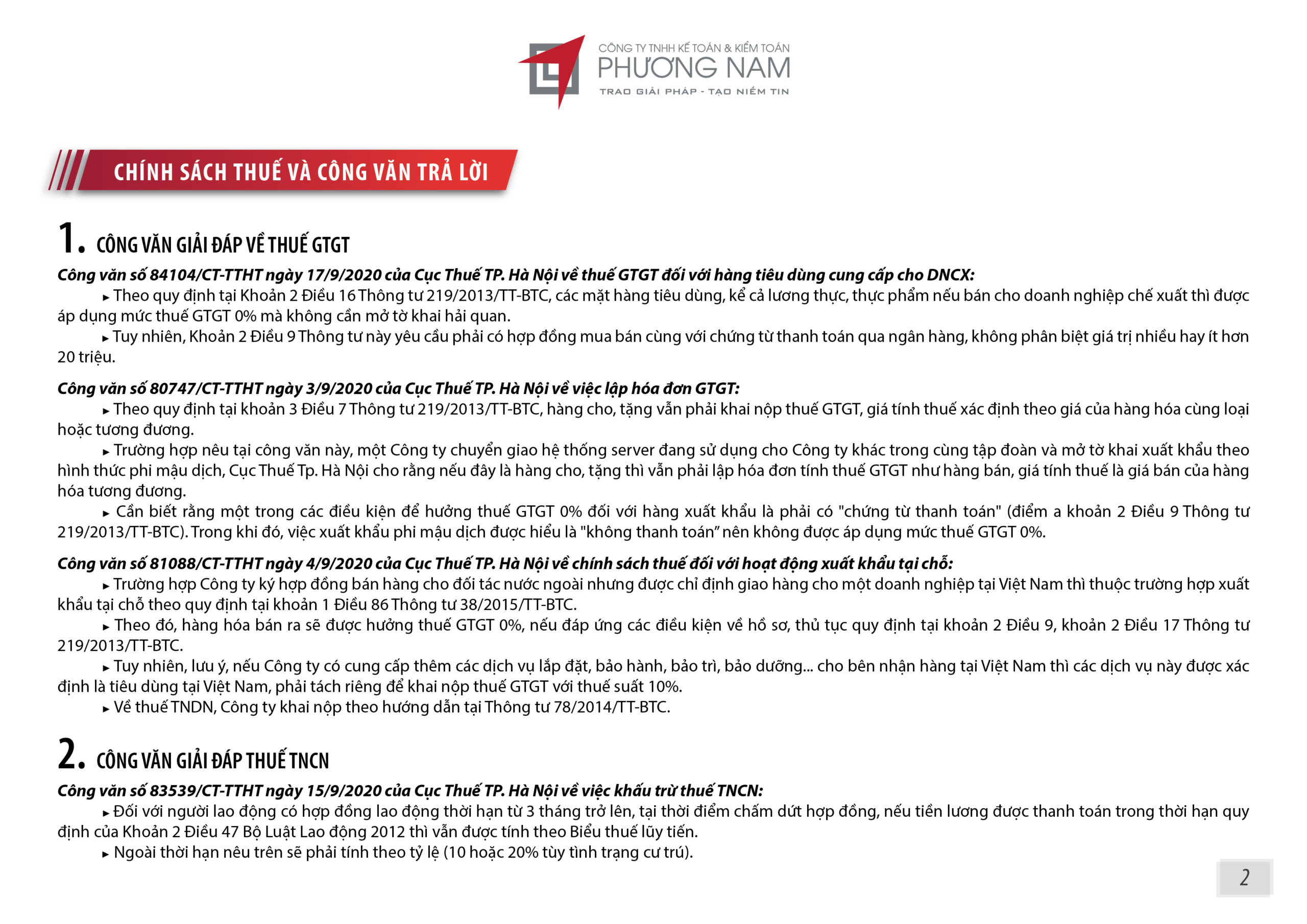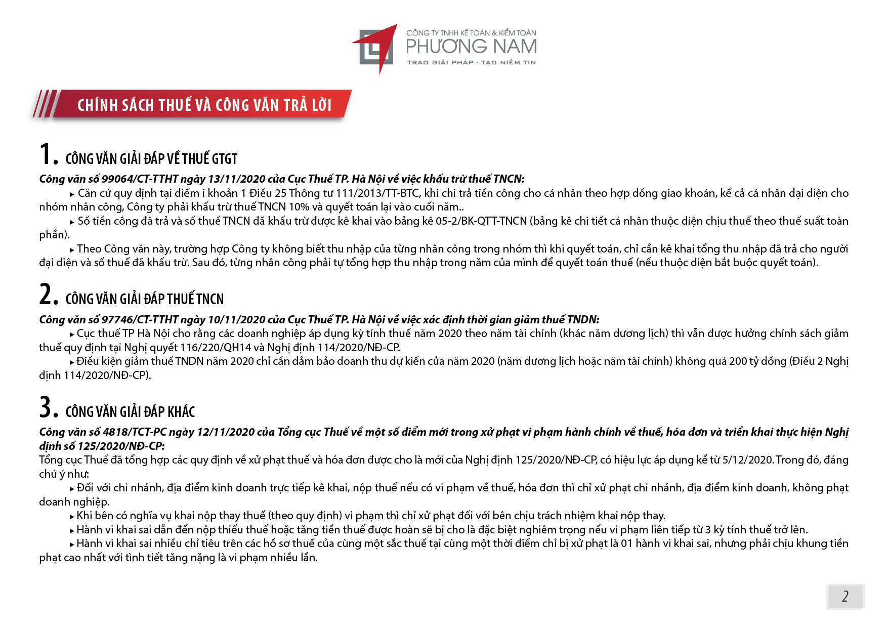 Bản tin Phương Nam tháng 9 cập nhật thông tin mới nhất về thuế giá trị gia tăng, thuế thu nhập cá nhân, thuế thu nhập doanh nghiệp, quy định khác