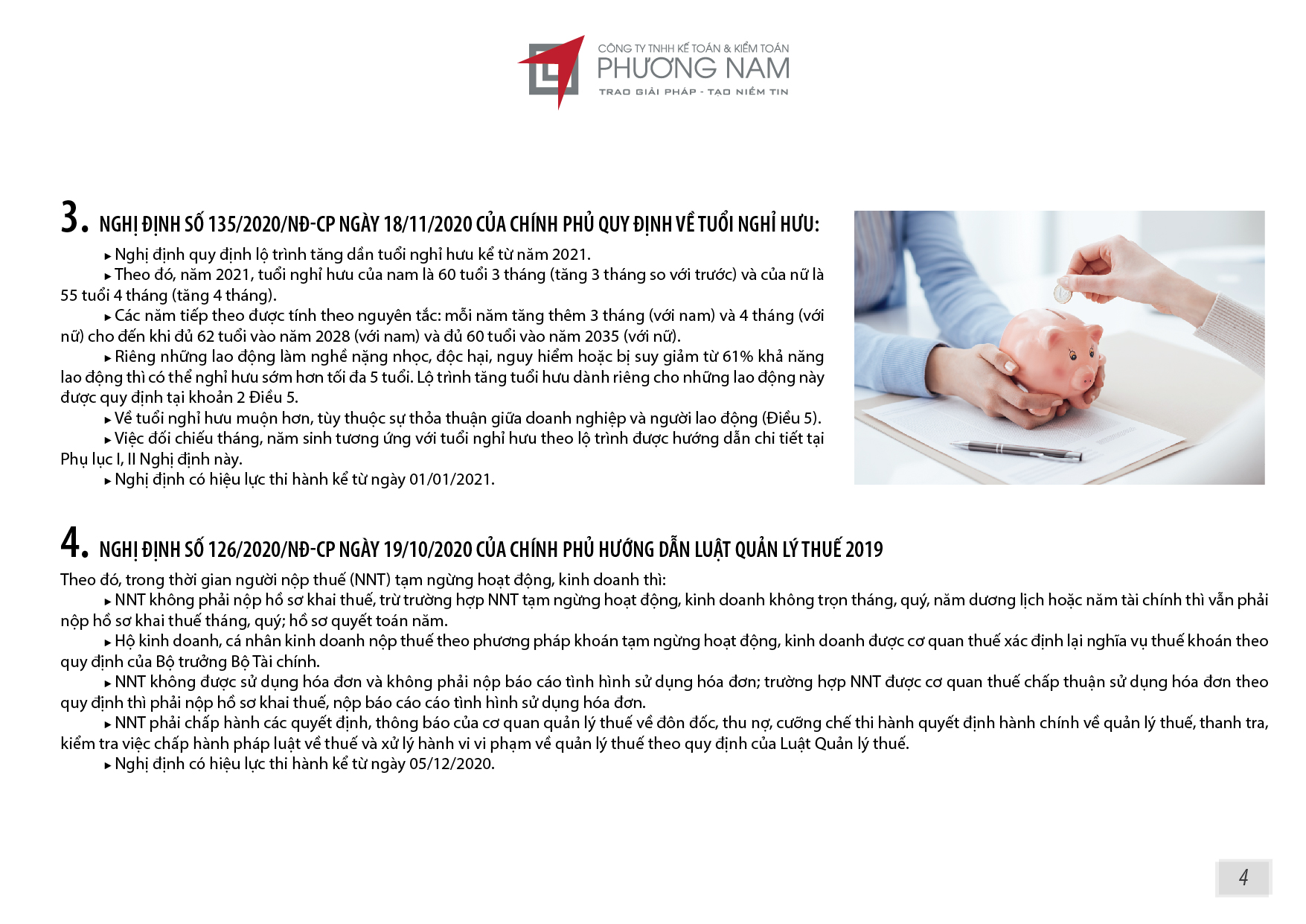 Bản tin tháng 12 nêu rõ các quy định của Chính phủ về hóa đơn chứng từ, quản lý thuế đối với doanh nghiệp có giao dịch liên kết, quy định về tuổi nghỉ hưu, luật quản lý Thuế 2019