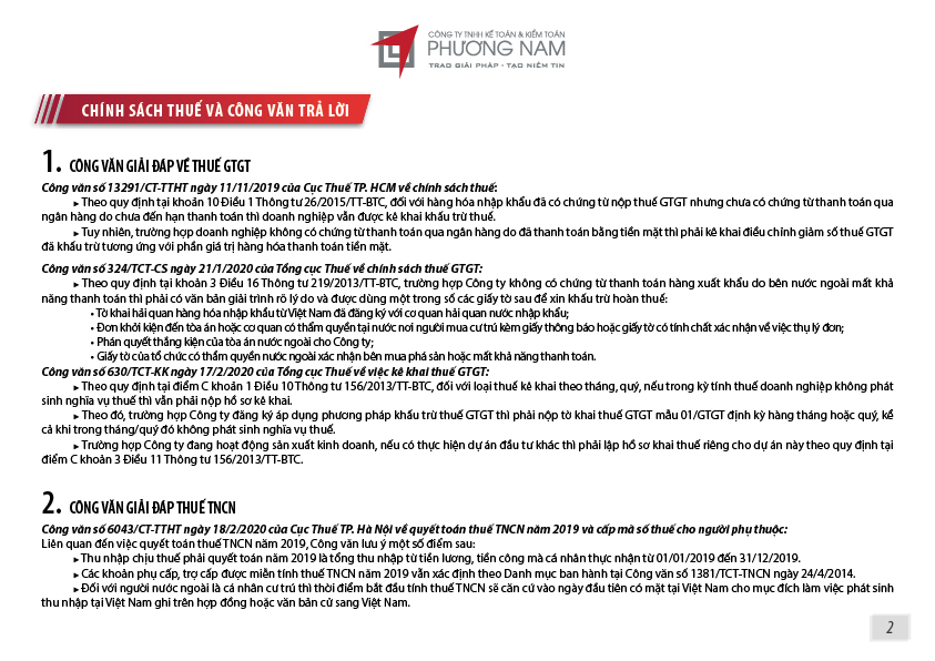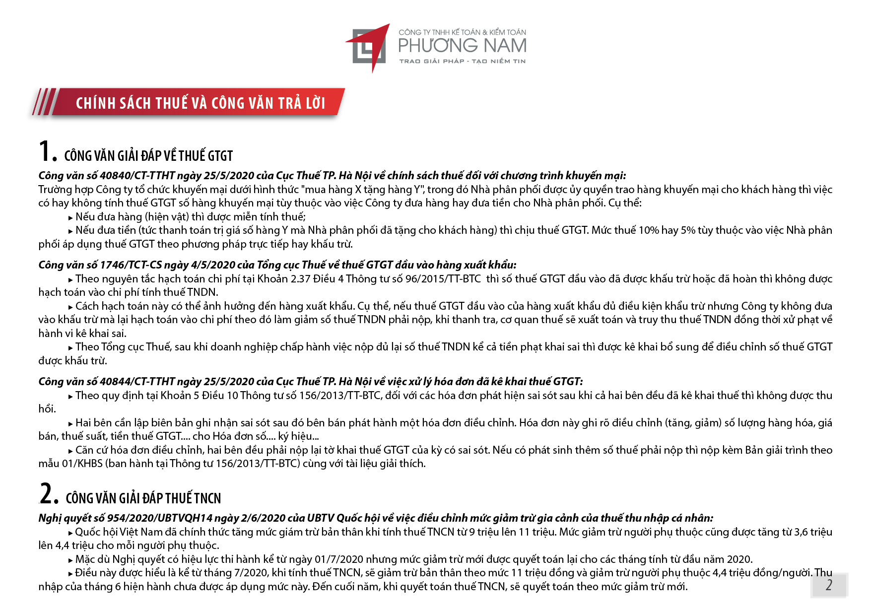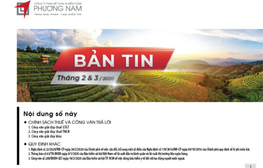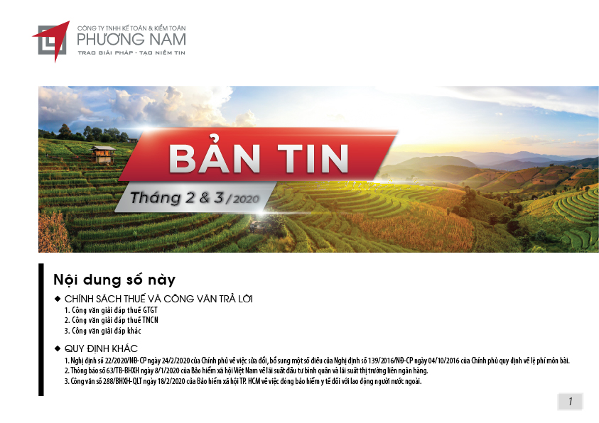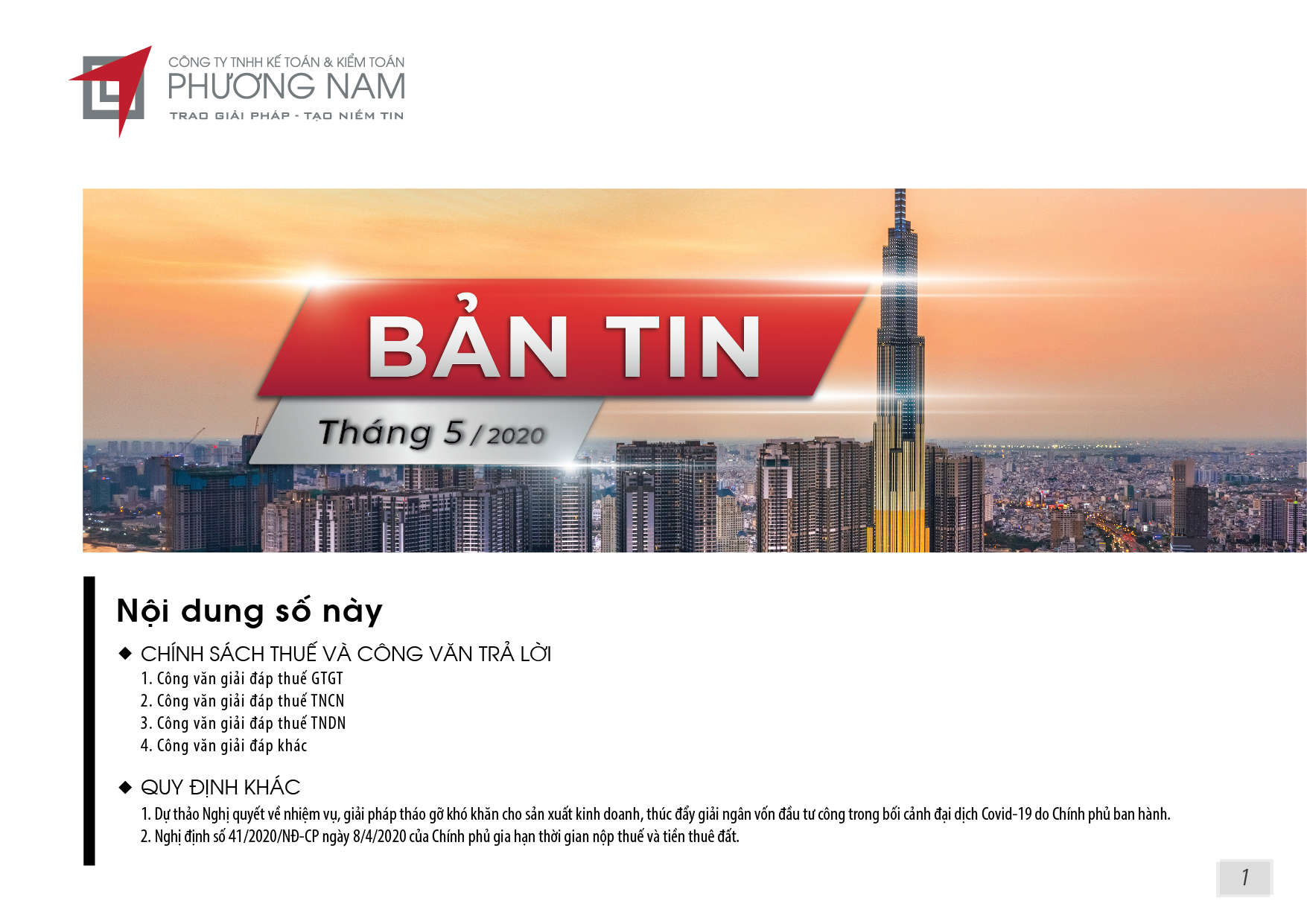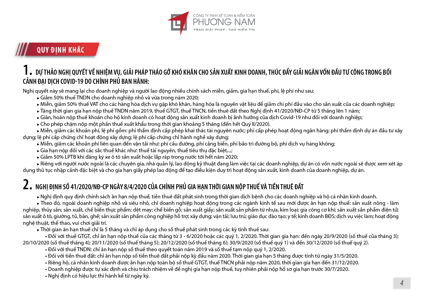 Bản tin cập nhật các chính sách thuế và công văn, nghị định của chính phủ về việc gia hạn thời gian nộp thuế và tiền thuê đất