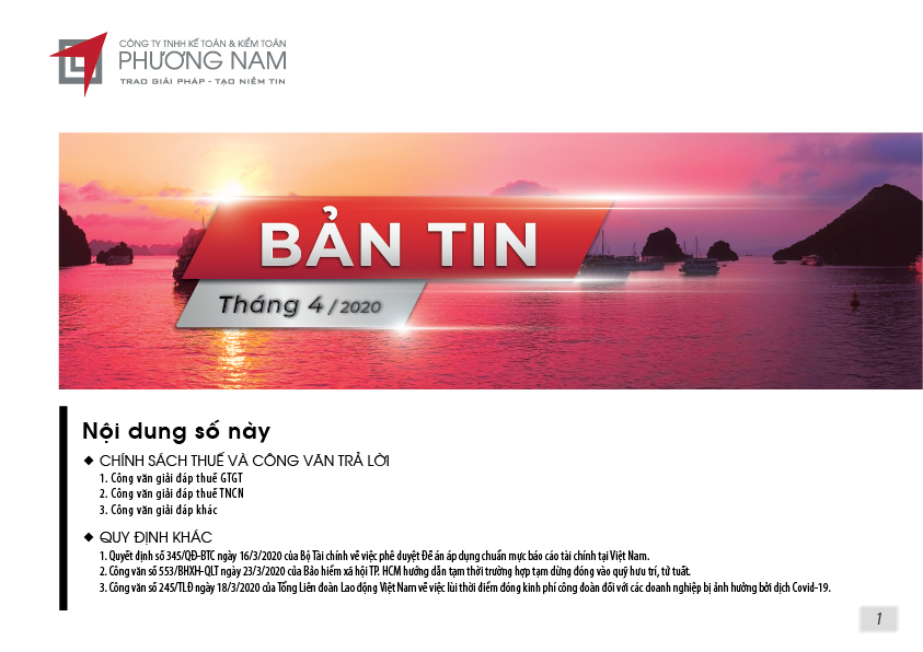 Bản tin Tháng 04/2021 giải đáp các chính sách thuế, quyết định của Bộ tài chính về việc phê duyệt đề án áp dụng chuẩn mực báo cáo tài chính tại Việt Nam…