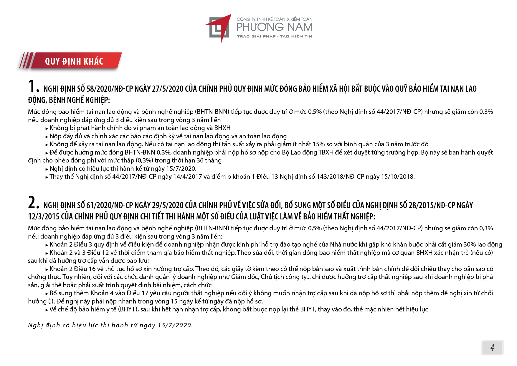 Bản tin cập nhật các chính sách thuế và công văn, nghị định của Chính phủ quy định mức đóng bảo hiểm xã hội bắt buộc vào Quỹ bảo hiểm tai nạn lao động, bệnh nghề nghiệp