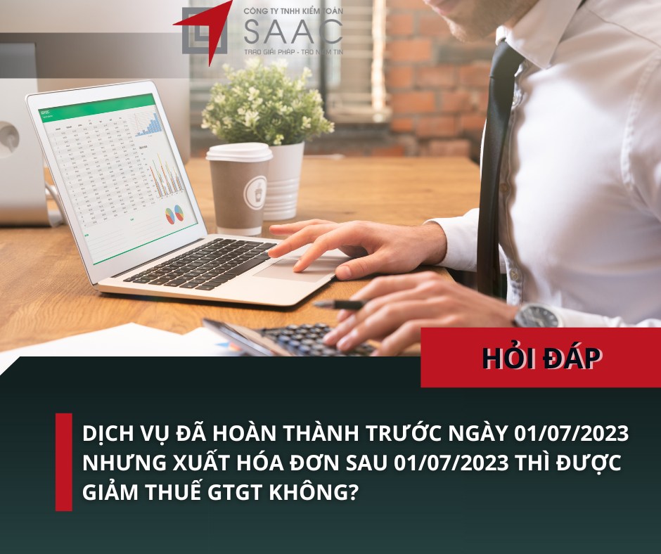 DỊCH VỤ ĐÃ HOÀN THÀNH TRƯỚC NGÀY 01/07/2023 NHƯNG XUẤT HÓA ĐƠN SAU 01/07/2023 THÌ ĐƯỢC GIẢM THUẾ GTGT KHÔNG?