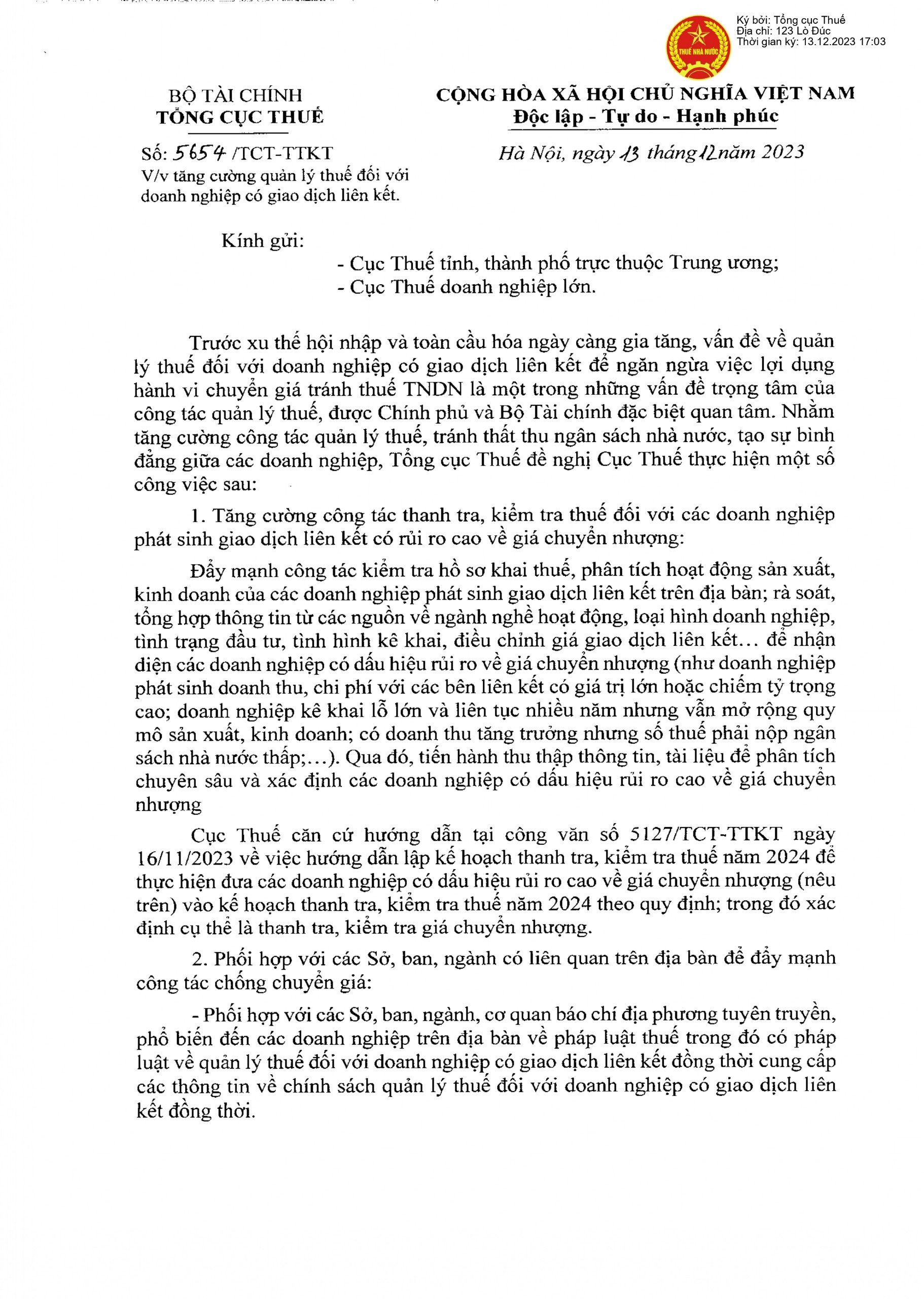 NGÀNH THUẾ SẼ NỖ LỰC THANH TRA THUẾ CÁC DOANH NGHIỆP LIÊN KẾT TRONG NĂM 2024